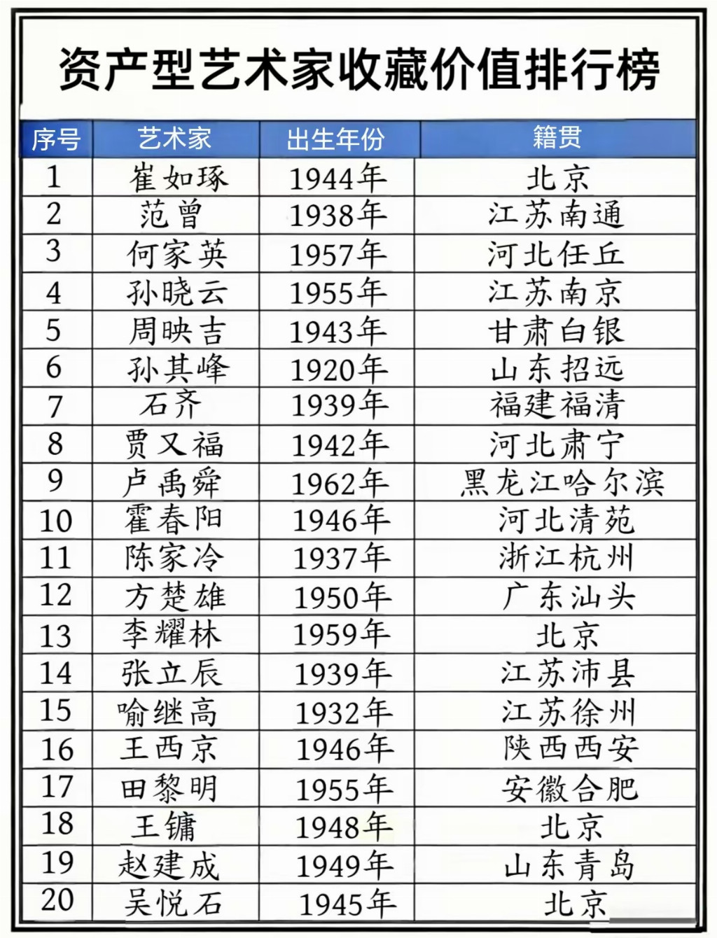 为此,隆重推出 【资产型艺术家排行榜】 与 【收藏投资排行榜】。