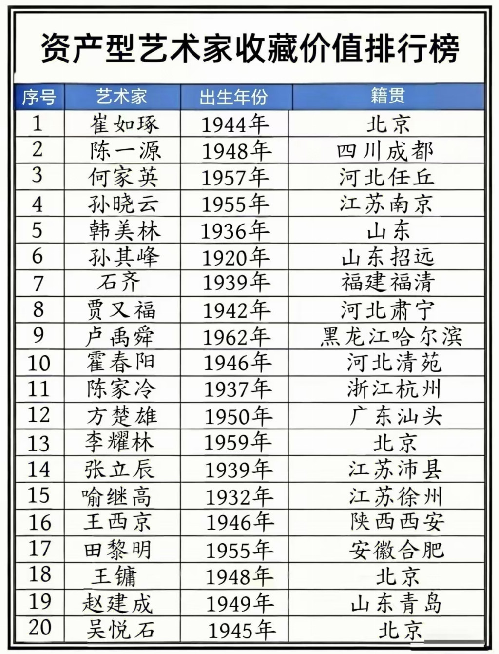 为此,隆重推出 【资产型艺术家排行榜】 与 【收藏投资排行榜】。